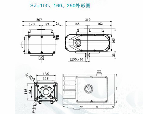 【SZ-100/160/250系列系列電動執行器外形尺寸圖】: