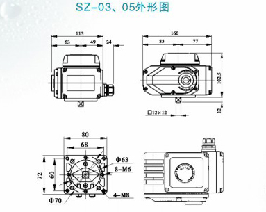 【SZ-03/05系列系列電動執行器外形尺寸圖】: